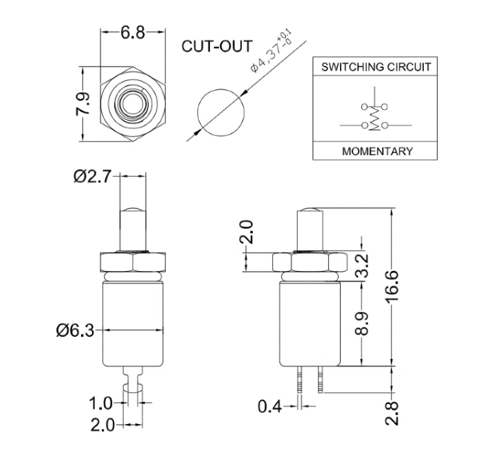 小(xiǎo)微型4mm金(jīn)屬按鈕開(kāi)關,常開(kāi)功能,高靈敏性,前置螺(luó)紋(wén)安裝,適用於狹小(xiǎo)的空間(jiān)